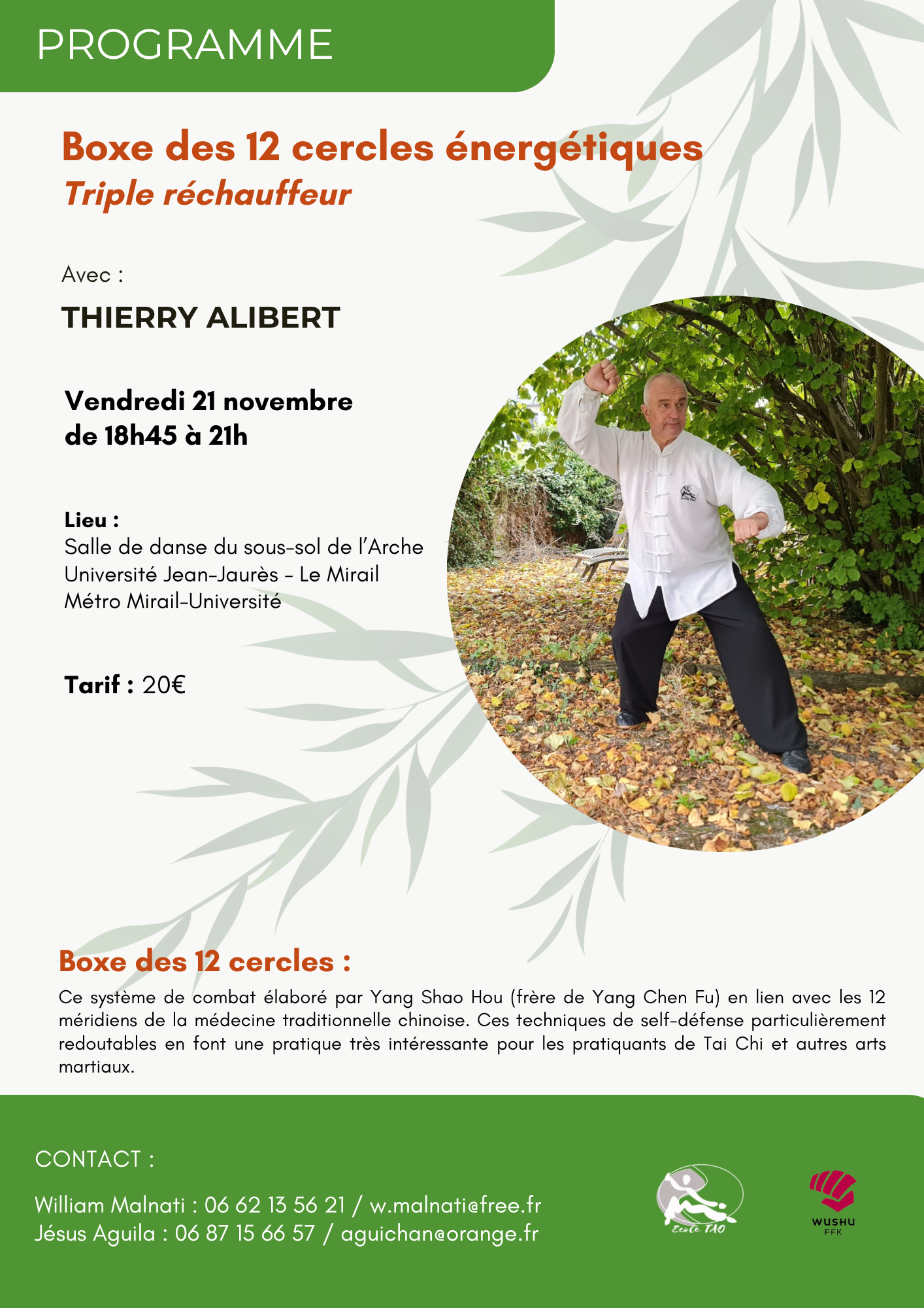 Boxe des 12 cercles énergétiques – Triple réchauffeur Télécharger le programme Date 21 Nov 2025 Heure 18:45 - 21:00 Tarif 20.00€ Lieu Toulouse (31) Organisateur William Malnati - Jésus Aguila Téléphone 06 62 13 56 21 - 06 87 15 66 57 Email w.malnati@free.fr - aguichan@orange.fr Partagez cet événement